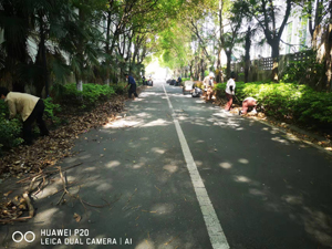 四月是美好的季節(jié),也是香樟樹大量落葉的季節(jié),樹蔭下樹叢間每個(gè)角落都是飛揚(yáng)的落葉,嚴(yán)重影響了水務(wù)大廈外圍的衛(wèi)生,更重要的是落葉干燥易燃會(huì)引起極大地安全隱患,如不及時(shí)清理,小小的煙頭就會(huì)引起火災(zāi)。并且大量的落葉落在綠化根部下,會(huì)造成綠化失去營(yíng)養(yǎng),我們外圍的保潔師傅每天都在不停的掃掃掃,可是一個(gè)人的力量趕不上落葉的速度。于是近日,我們組織全體保潔分區(qū)分工掃落葉,掃出來(lái)的落葉裝袋運(yùn)走,我們按照停車位的順序一個(gè)個(gè)的清掃,笤帚一遍一遍的揮舞著,將地上的落葉掃成堆裝入垃圾袋運(yùn)往垃圾站,一袋又一袋,一圈外圍掃下來(lái)大家已是滿身大汗。