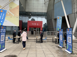為了便于管理和疫情防控工作的開展,賽事期間我們的安保人員全員在崗,輪班休息的人員也必須隨時待崗,領導管理人員不定期隨時巡查和指導工作。體育館3號口是運動員們進入場館的主通道,在比賽正式開始之前,我們就提前在3號門崗外的場地,布置好了宣傳彩旗和展板,布置了三個通道的疫情檢查工作臺和隔離護欄,配備了酒精噴霧、免洗手消毒液及口罩等防疫物資,在通道兩側位置設置了多福醒目的巨型場所碼展板。比賽當日,我們的安保人員個個精神抖擻,身著統一的制服、黑皮鞋、禮帽和口罩,胸口佩戴著各自的工作牌,對所有進入場館人員逐一進行身份核驗和體溫測量等工作,引導各自隊伍進入場內劃分的專用比賽和休息區域。