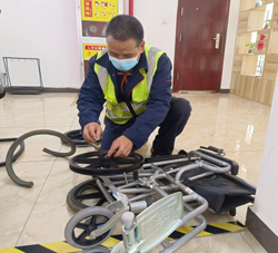 “賴師傅,西區服務臺的輪椅輪胎到了,麻煩來安裝一下!”看到工作群里西區服務臺工作人員發的信息,賴師傅立即從東區大廳一路快走趕往西區。到達西區了解現場情況后,賴師傅前往工具間拿來了各種安裝工具準備進行正式安裝,然而開局不利,在賴師傅一番檢查之下,終于發現了問題所在,原來問題出在軸承尺寸上面,正當賴師傅一籌莫展時,內勤丁海瑩帶著東區服務臺工作人員趕到了現場,與賴師傅一起商量如何解決這一問題,是找專業人員修改一下軸承尺寸,還是重新購買一個新的輪胎,大家紛紛發表自己的建議,終于,功夫不負有心人,賴師傅憑借著自己多年的工作經驗,對輪胎進行了處理,并成功安裝上輪椅。為了保證輪椅能夠正常使用,賴師傅找來了幾個保安人員,進行承重測試以及穩定性測試,待一切測試正常,才算是正式完工,這也體現了賴師傅盡職盡責的工作態度和工作作風。
