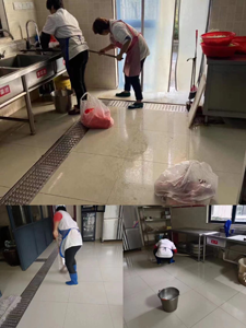 隔天早晨5點(diǎn)多,保潔阿姨連同食堂的三個(gè)阿姨便一起工作起來,她們穿好工作服,戴好手套,3個(gè)人打掃食堂的外圍,2個(gè)人打掃食堂的內(nèi)場(chǎng),忙得熱火朝天。在她們的齊心協(xié)力合作下,很多的衛(wèi)生死角也逐漸變得干凈起來,內(nèi)場(chǎng)的阿姨也不閑著,她們一個(gè)在切配,另一個(gè)在做早餐,7點(diǎn)左右衛(wèi)生工作也已經(jīng)完成了,她們笑著說道,人多力量大,一個(gè)人的力量是有限的,但是抱團(tuán)一起干活卻快了很多!