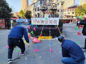 總有一群可愛的人為工作而付出,他們?nèi)粘龆鳎章涠ⅲ瑸闃I(yè)主家園的繁榮、和平、安定、美好而默默奉獻(xiàn)。春節(jié)來臨之際,為了讓小區(qū)里更有節(jié)日的氣氛,萬水美蘭物業(yè)員工精心布置園區(qū),營造濃郁的春節(jié)氛圍,各個門崗拉著彩帶,小區(qū)內(nèi)每個單元門口大紅燈籠高高掛,張貼節(jié)日溫馨告知,入戶單元門上張貼著喜慶的窗花,園區(qū)高桿路燈懸掛五星紅旗及懸掛新春祝福橫幅等等,大家忙得不亦樂乎,讓業(yè)主感覺到春節(jié)溫馨與氣氛。