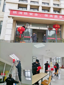 燈籠掛好之后再貼窗花,最后大家再到常高速管理中心辦公大樓正門廳掛上超大燈籠,張貼“歡度佳節”四個大字,門廳里面掛上大大的中國結。因為全全程登高開展作業有一定的安全風險,為了確保員工的安全,項目經理馬丹丹全程“監工”,最終將張燈結彩過新年這項工作順利開展。領導路過門廳,跟保安們說:“辛苦了,這過年的氣氛有點感覺了”。得到客戶的滿意認可是我們物業人的追求目標,在這里,祝大家新年快樂,兔年大吉,所愿皆所得。