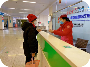 “好醫管”服務中心的員工夏同梅正在耐心的接過問路者遞過來的紙條,夏大姐瞇起眼睛仔細的看著單子上的地址,并且快速判斷為他指明了方向,因為她知道如果指錯了方向,那么這位患者將會拖著難受的身體多繞幾圈,這樣的話無疑就是雪上加霜。平時夏大姐還會在患者需要幫助的時候本著善心去幫助別人,之前有一位小伙子著急的找到了服務中心尋求幫助,他的愛人懷孕已有七個月,現在有流血現象。夏大姐急患者之所急,想患者之所想,立即推著輪椅護送著孕婦到了急診室,因為急診患者較多,無法抽調人員推送病人去住院部,夏大姐又推著病人去往住院部,交代小伙子辦住院手續,這位家屬為夏大姐這種服務精神所感動,幾次送東西,現金表示感謝,夏大姐都沒有接收。