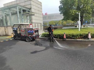 大清早,一輛灑水車(chē)和一名保安員正手持高壓水槍對(duì)場(chǎng)站路面進(jìn)行沖洗,灑水車(chē)具有高壓清洗功能,他先是用灑水車(chē)進(jìn)行沖洗,隨后再對(duì)沖洗出來(lái)的雜物進(jìn)行清掃,人車(chē)相互配合,一會(huì)功夫,路面的細(xì)小垃圾、塵土和污漬等被一洗而凈。此次大清掃工作,對(duì)旅客營(yíng)造了一個(gè)整潔、衛(wèi)生、安全的環(huán)境,并為迎接文明城市檢查奠定了有力的基礎(chǔ)。