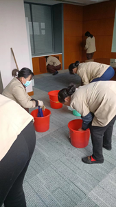 按照甲方要求,我們需要整理出三個辦公室供巡查組談話、工作、休息。我們組織所有員工把26樓的三個空置房間整理出來,由于房間空置許久,積灰已深,保潔員們拎著水桶、拿著抹布、清潔劑等作業工具,對桌椅板凳、柜子、窗子玻璃統統清掃了一遍。一個多小時下來,辦公室從墻面到地面都光亮一新,保潔的工作完畢后維修師傅們再上場安裝窗簾、電話和插頭,大家全力合作,為巡查組創造優良的工作環境。