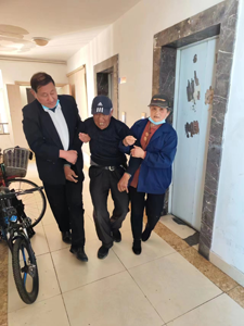 老人說自己在乘坐電梯時,突感一陣眩暈隨后倒地,熊主管和殷師傅一直耐心陪伴老人,仔細查驗老人有無受傷情況,在他們的攙扶下,老人慢慢站立起來,并走回了家。熊主管不放心老人的身體狀況,又在現場陪伴老人至家人歸來后才離開,老人家人也對物業的熱心幫助表示了衷心感謝。
