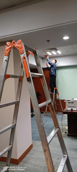 巡查組的辦公點安排在26樓的一個辦公室,當初進駐的時候項目部就已經按照甲方要求把辦公室邊邊角角打理得干干凈凈,可是入駐一段時間后,大家發現每到大風天時,天花板就會咔咔作響。后來發現是因為十幾年的天花板經過熱脹冷縮已經有點松動變形了,于是維修師傅們等到巡查組工作人員下班后,就開展連夜工作,把天花板一塊一塊地拆下來重新整形加固安裝。經過一個晚上的努力,所有天花板都已加固完成,恢復平整,保潔員隨后再用抹布擦拭干凈,干活留下的灰塵也都清理地干干凈凈,保證辦公環境的整潔舒適。