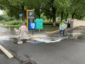 近日,常州持續下了一整天的雨,雨后路面積水也越來越多,對過往旅客出行造成不便,為了方便旅客出行,保潔員對各區域的路面積水進行清理。汛期前,高鐵北站項目部保潔員、保安員聯動對全場站區域內污(雨)水井進行了集中檢查和清掏,提高了排水能力,此次降雨量雖大,好在高鐵場站各區域排水均為正常。為此,我項目以“雨”為令,在雨停時迅速行動,組織保潔員清理各自管轄范圍內未排完的積水和白色垃圾,確保路面無雜物、排水順。在清理雨水,清理淤泥過程中,我們的保潔員充分發揚了“寧愿一人臟,換來萬人凈”的吃苦耐勞精神,不顧腳下的泥水,全力清掃積水,甚至污水濺滿了全身,也沒有一個人有怨言和退縮。高正人秉承了企業精神和服務理念,用自己的行動詮釋著什么是敬業精神。