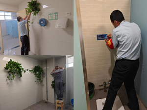 針對醫院人流量大、廁所使用頻率高的現象,為保證廁所整潔的環境衛生,設專職管理人員對保潔人員實行精細化管理,加大巡檢力度、強化監管職能、每天按標準檢查、定期考核。此外為了讓如廁者有更舒適的體驗,不僅在衛生間添加綠植,還通過香氛設備、點檀香去除異味,每個蹲位和小便池都貼上溫馨提示標識(文明如廁、禁止吸煙),洗水池旁掛畫提示“節約用水”下方配圖幽默笑話,也會定期檢查物資使用情況并及時增補,定時對廁所使用狀況進行監督檢查,發現問題及時聯系維修。