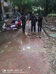 保安員立即將情況上報給熊主管,并表示近日梅雨天氣,若地面破損會造成積水,很有可能發生居民在夜間通行時崴腳摔倒,車輛壓過碎石亂濺的情況。物業熊主管立即安排物業師傅們對小區破損地面進行修復、更換地磚,快速解決居民出行安全問題。