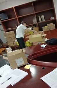近日,甲方將給各部門發放物料的工作交給了項目經理,因甲方辦公室部門多,物料多,一人無法承擔此重任,只能由保潔主管和項目經理兩人一起分工合作。兩人先從整理開始,到分發完全部物料,整整持續了兩天半的時間才將這項工作完成。