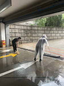 今天,投資廣場客服在巡查過程中發現地下室地面潮濕,積水流入下水道速度緩慢,由于地下室來往車輛較多,極容易發生安全事故。發現此情況后,保潔主管何秋萍立刻通知保潔員第一時間趕往現場開展清理工作。收到通知后,保潔員趙雪珍立刻趕到現場,她用推水架一遍又一遍地把積水推向下水管道,保安員王玉和見此情況,也拿上了掃帚一起來幫忙,還不忘提醒來往行人:“小心地滑,注意安全”。經過倆人地不懈努力,地面積水終于清理干凈,路過的業主也紛紛表示感謝。
