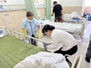 由于醫院環境其自身的特殊性,對衛生要求及防感染要求極高,為避免項目部員工在保潔過程中出現交叉感染的風險,根據院感工作的相關要求,德安醫院項目部組織全體保潔員開展了“一床一巾”的專項培訓,確保病人的床單元清潔整齊,床邊無灰塵、無垃圾。