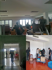 在常高速會議室內部改造工程中,拓寬會議室面積成為了關鍵的一環。因此,在改造工程開始之前,必須清空會議室內的物資。項目部的保安員和保潔員主動承擔起這個任務,他們風風火火地展開了搬遷式工程,將所有的物品有條不紊地搬運至倉庫。