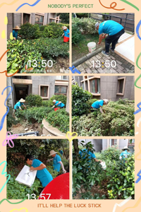 此次活動主要對小區主要道路、小區綠化帶里的白色垃圾進行撿拾清掃。大家頂著太陽,穿梭在小區道路旁、綠化帶周圍,清理著小到煙頭、碎紙屑、落葉,大到衛生紙、塑料瓶以及廢紙盒等各類生活垃圾。盡管汗水浸濕了保潔人員的衣服,但是大家發揚奉獻精神,不怕臟、不怕累,小區內的環境煥然一新。