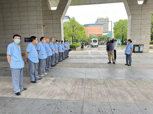為了確保檢查當天萬無一失,項目經理還安排了病區保潔支援外圍。保潔員們攜帶畚箕、掃把、火鉗和垃圾袋等工具,來回巡查,一步一崗,嚴格確保公共區域的清潔與衛生的整潔。在檢查當天下雨的情況下,保潔員們依然一絲不茍地執行任務,毫無怠慢。他們在雨中堅守崗位,連續工作數小時,用實際行動展現了醫院的專業精神和敬業精神。