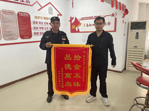 近日,乾盛蘭庭項目部收到3甲-2503業主專程送予保安師傅肖玉兵印有“拾金不昧、品德高尚”金色大字的一面錦旗,他激動得握著肖玉兵的雙手對他表示謝意“太感謝肖師傅您了,真沒想到我的手機還能失而復得,手機里的文件信息和工作數據對我太重要了。”而我們的保安肖師傅卻只是淡淡地說了句“不客氣,這是我應該做的。”