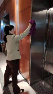 說干就干,每個樓層阿姨負責自己的包干區,他們拿來清潔劑、不銹鋼保養油先把簡單的水龍頭擦拭干凈再上一層保養油,接下來清理電梯門框,阿姨們小心翼翼地用百潔布先把表面的污垢清理掉再上保養油,這樣一番操作下來,不銹鋼表面看起來更锃光瓦亮。我們的貼心服務,也得到了了甲方的一致好評!