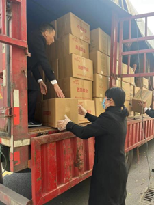 11點30分,大貨車停穩后,項目部6位管理人員在項目經理的帶領下,開始搬運貨物,女同志搬運輕一點的物資,男同志搬運較重一點的貨物,在3位保安人員的協助下,大家僅花了不到一個小時就把數百箱的貨物搬運下來,工會主席對于我們的工作效率也給予了充分肯定與贊揚。