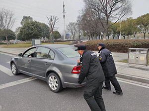 當日8時50分許,秩序維護員時培林在5號崗周邊執勤時,發現一輛小型汽車停在出口附近一動不動,致使后面車輛無法通行,存在交通安全隱患。發現情況后,他立即上前了解情況。經詢問得知,車輛在等待接人啟動車輛時,突然熄火被迫停車無法正常啟動。由于該路段為停車場出口,車流人流量較大,如果不及時處置,易造成道路擁堵和道路交通事故的發生。為確保道路交通安全暢通、有序,群眾出行平安,時培林絲毫不敢怠慢,簡單與駕駛員商議后,決定先將車輛推至路邊不妨礙交通的地方。