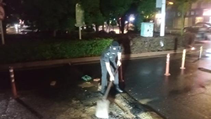 隨著傍晚的到來,車輛逐漸減少,張典軍和同事們再次回到8號崗亭前,準備徹底修復這個坑洞。他們移開墊在坑洞上的磚頭和沙袋,用專業的物料將坑洞填平,并在上面覆蓋上蓋板。在大家的共同努力下,坑洞很快就被修補好了,路面恢復了平整。