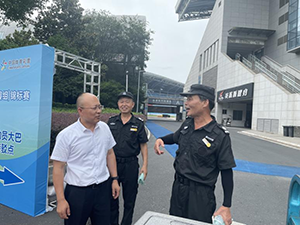 近日,公司總經理張總親自來到奧體中心項目,深入一線,慰問在高溫下辛勤工作的員工們。在周經理的陪同下,張總來到安保和保潔的工作區域,與員工們親切交談,了解他們的工作情況和身體狀況。