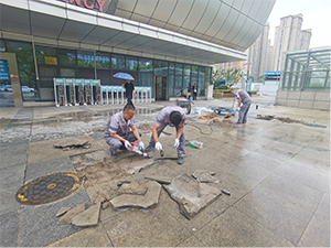 在改造方案尚未最終確定前,瓦工專業的維修師傅們已開始了他們的“急救”行動。不論是烈日炎炎還是雨水綿綿,他們總是第一時間出現在損壞的地磚旁,對其進行臨時修補。他們的辛勤工作保障了急診通道的順暢無阻,為醫護人員和患者提供了安全的通行環境。