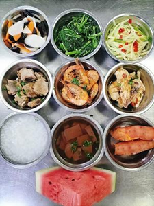 隨后,在寬敞明亮的廚房里,鍋碗瓢盆交響曲就此奏響。阿姨們熟練地切菜、配菜,動作迅速而精準。爐灶上,火焰升騰,鍋里的油滋滋作響,食材在阿姨們的翻炒下散發出誘人的香氣。無論是炒菜、煮湯還是蒸飯,每一個環節都飽含著她們的用心和專注。