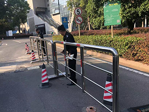 行動迅速而有效,安保人員迅速從倉庫調集鐵馬與錐形桶,精心布置在汽車進口與非機動車道之間的關鍵位置。為確保隔離措施穩固有效,他們還巧妙地使用鐵絲將多個鐵馬捆綁固定,并在其前端設置醒目的錐形桶作為進一步警示,有效防止了市民誤動或故意破壞。
