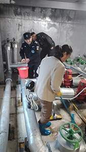 為了消除這些安全隱患,水務大廈物業管理部決定針對穩壓泵房來一次全面大清掃。說干就干,我們的保潔保安人員不怕臟不怕累,將排水溝、排水口處的泥灰雜質等清理干凈、裝袋,隨后將垃圾清運處理。固體垃圾清理完畢后,保安人員接水管把整個機房地面用水沖刷一遍,再用清潔的抹布擦拭機組上的灰塵雜質,檢查標識名牌是否清晰,確保整個機房環境衛生。從而體現了我們公司的高標準高要求的標準一體化。