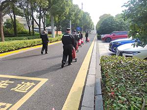保安人員們分工明確,行動高效。他們或兩人一組,或單人操作,仔細核對滅火器的編號、位置信息,將其穩穩地放置在指定的存放點,如地面停車場、社會停車場、蓄發停車場辦公區域等各個關鍵部位。在歸位過程中,還對周邊環境進行了檢查與清理,確保滅火器周圍無雜物遮擋,取用通道暢通無阻。