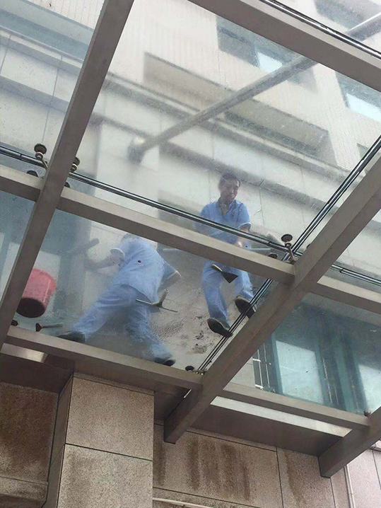 “好醫館”醫療事業部啟東人民醫院項目部,近日,我們在日常巡查過程中發現,門急診大廳外的玻璃平臺上有污跡,由于之前下了近一個月的雨,平臺上、下水道里有少許的青苔。門診主管立刻通知了兩名機動人員,并讓機動帶全保潔工具。由于前期下雨,玻璃上又有灰塵,導致玻璃上較滑,給清潔工作帶來一定難度。我們先用抹水器沾上清潔水把玻璃平臺的玻璃一塊一塊的推洗一遍,反復重復這個過程,最后,再用玻璃刮刀刮一遍,玻璃才有擦干凈的效果。然后再把平臺內的排水溝也清理一遍,以防后期下雨堵塞漏水。門診來訪的病人及家屬對我們高正員工的不怕辛苦、細心服務也點頭稱贊!堅守高標,篤行正道。今后我們將切實把思想和行動統一到物業服務工作中,為廣大業主提供更優質的服務與生活!