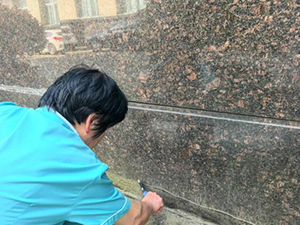 他們精心準備工具,從高處到低處,細致地對每一處青苔進行清理。有的地方青苔附著牢固,保潔員們就用刷子一點點刷,用清潔劑反復擦拭。炎炎烈日下,他們的汗水濕透了衣衫,但沒有絲毫懈怠。