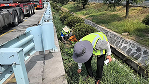 外場區域的清理同樣細致入微。停車區的地面油污用專用清潔劑反復擦拭,綠化帶內的煙頭、紙屑被逐一撿拾,連指示牌背面、垃圾桶底部等易被忽略的角落,都經過徹底清掃。員工們還對閑置區域的雜草、雜物進行集中清運,讓服務區內外呈現出清爽整潔的面貌。