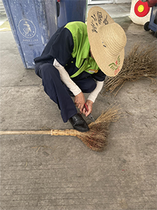 有一天,李瑞清在清掃時發現,有些煙頭卡在破損的路溝里,小掃帚因為比較軟,無法將它們掃出。面對這一難題,李瑞清并沒有放棄,而是開始思索解決辦法。他環顧四周,目光落在了大掃把上,突然靈機一動,想到了一個好主意。