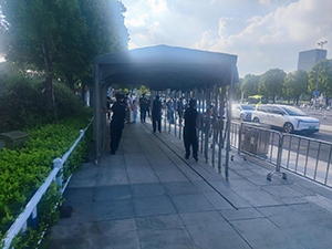 設(shè)施到位后,安保人員同步強化現(xiàn)場管理:在雨棚周邊劃定候車區(qū)域與車輛通道,避免人車混流;安排專人引導(dǎo)網(wǎng)約車按序?、旅客排隊候車,減少無序等待造成的時間浪費;同時利用廣播循環(huán)提示候車須知,提醒旅客注意物品保管。一系列舉措既保障了乘車秩序井然,又讓旅客在 35℃以上的高溫中感受到實實在在的清涼。