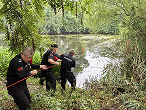 幾名隊員在岸上緊密拉著繩索,控制船只的移動方向,確保船上作業(yè)人員的安全;船上的隊員則專心清理水藻,將打撈上來的水藻通過繩索傳遞到岸邊堆放。這種協(xié)作方式不僅大大降低了作業(yè)人員在水塘中長時間作業(yè)的安全風(fēng)險,還極大地提高了工作效率,減少了清理時長。