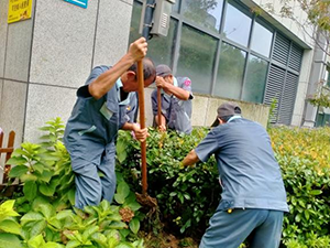 今日清晨6點多就看見幾位師傅已揮起鐵鍬,一場特殊的“綠植遷徙”正悄然展開。因墻體下側(cè)需要施工,要在此處開出一米寬的空間施工,擋住的綠化帶需臨時遷移,為兼顧工程進度與植被保護,師傅們將這些綠植移栽至西邊停車場后側(cè)的綠化帶。