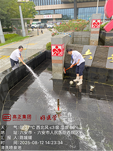 清理前,外圍主管對噴泉水池進行了詳細勘察,發現池底沉積了大量淤泥、落葉及微生物污垢,部分噴頭因水垢堵塞導致水花效果不佳。工作人員首先排空池水,利用高壓水槍沖洗池壁,隨后用鏟子、地板刷等工具清除池底頑固淤泥和雜物,確保無死角。