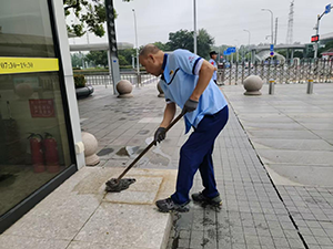 在清理過程中,保潔員顧春泉不怕臟、不怕累,始終保持著認真負責的工作態度。經過他的不懈努力,原本布滿污漬的地面逐漸恢復了潔凈,重新展現出光潔如新的面貌。