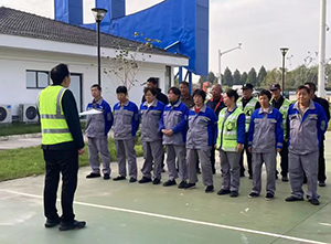整潔的廣場上,“高正人”的員工們身著反光背心排著整齊隊伍,一場嚴肅的涉路作業培訓正在進行。物業經理拿著文件詳細講解操作規程,員工們專注記錄要點,從交通錐擺放規范到應急處置流程,每一個細節都凝聚著對安全的敬畏。