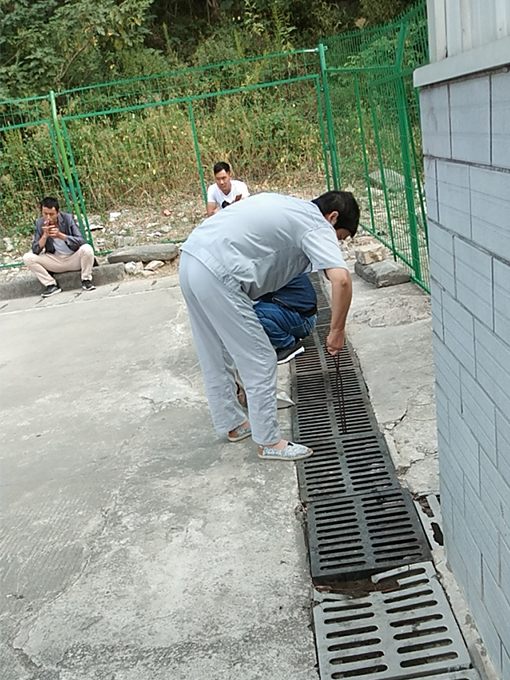 淌水溝的上面都是由鐵質的漏空蓋板排鋪,蓋板需要一塊一塊的搬起,安排一個保潔員在排水溝內進行清掃,因排水溝內還有管路,保潔員需先將管子抬起,才能進行清掃,先將煙頭、樹葉等垃圾掃成一坨,再用鐵鏟將垃圾鏟出,由另一位保潔員倒入垃圾桶內,淌水溝的高度較高,在清掃及鏟垃圾的時候也多有不便,淌水溝的距離較長,鐵質的蓋板又重,但我們的保潔員依舊將這項工作完成,不辭辛苦,埋頭苦干,一點一點的將之清掃干凈。有的區域的淌水溝較淺,在等待考試的學員便會蹲在那里抽煙,嚼口香糖,將煙頭,口香糖扔在溝里,保潔員們便只能用夾子一點點的夾出煙頭,口香糖印用鏟子一點點的鏟掉,用手捻出,將淌水溝打掃干凈。