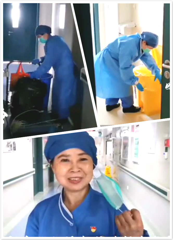 疫情期間,住院部20樓的老干部病房長年滿員,住的都是已經退休的老軍人、老紅軍、老干部,保潔工作量大。由于武漢封路,另外一個保潔師傅無法按時返崗,江漢娥一個人挑起了整個20樓的保潔工作,每天早上5點,她就開始忙碌起來,打掃所有的醫生辦公室、專家辦公室、護士值班室、護士導醫臺、病房、通道以及大廳區域。她打掃衛生工作得到了科室的一致好評,科室的同事們也會每天為她帶來新鮮可口的飯菜,解決用餐問題。
