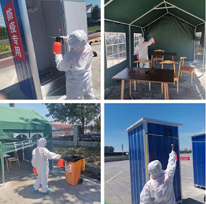 服務區指揮小組制定轉運人員休息區域工作預案,選取遠離主營場所、加油站以外偏遠、人流少的區域設置防疫專用休息區,轉運事宜關系到疫情防控大局,全體人員高度重視,設立了服務保障組。經協商決定,由東部高速管理公司采購隔離水碼50個、移動衛生間2個、遮陽棚1頂,物資到位后,物業組織保安人員加班加點布置隔離場所,并在現場醒目位置布置防疫專區警示牌,確保轉運工作區域相對獨立,預留充分的隔離區域和緩沖地帶。